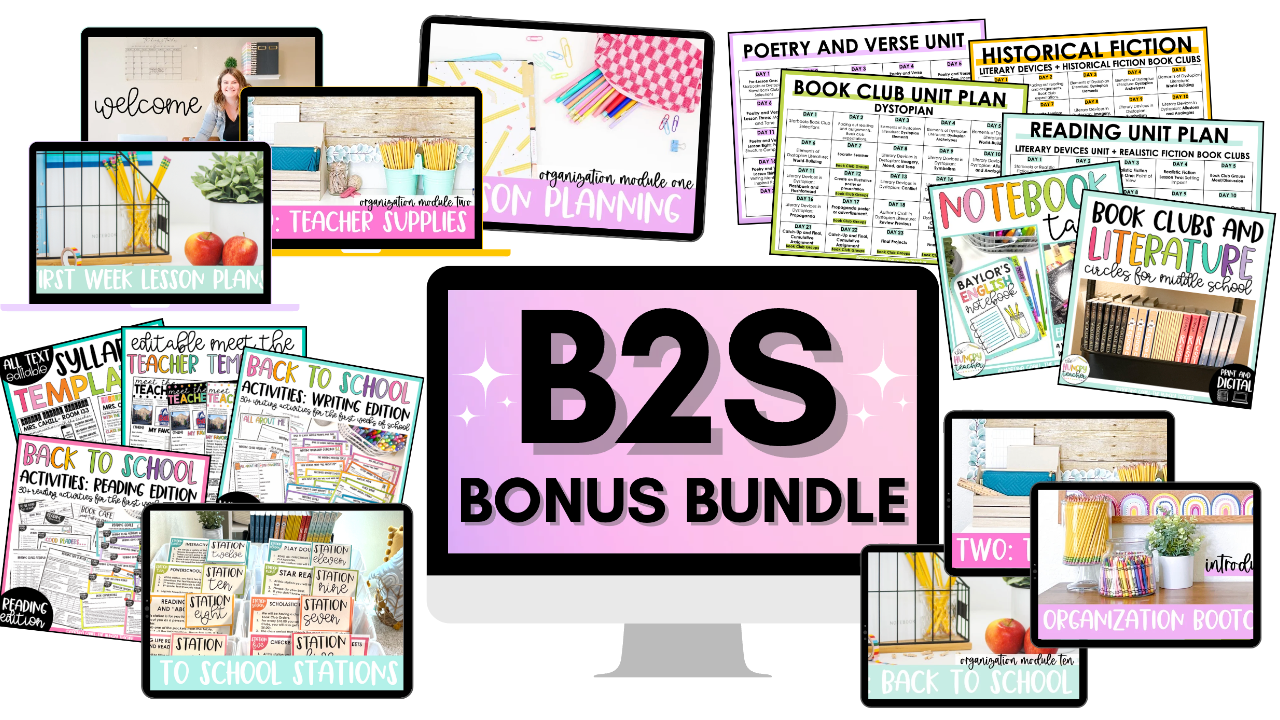 The FREE Live Workshop with the 3-Step Method for Your Perfect Middle School ELA Class Period includes these bonuses incredible bonuses: