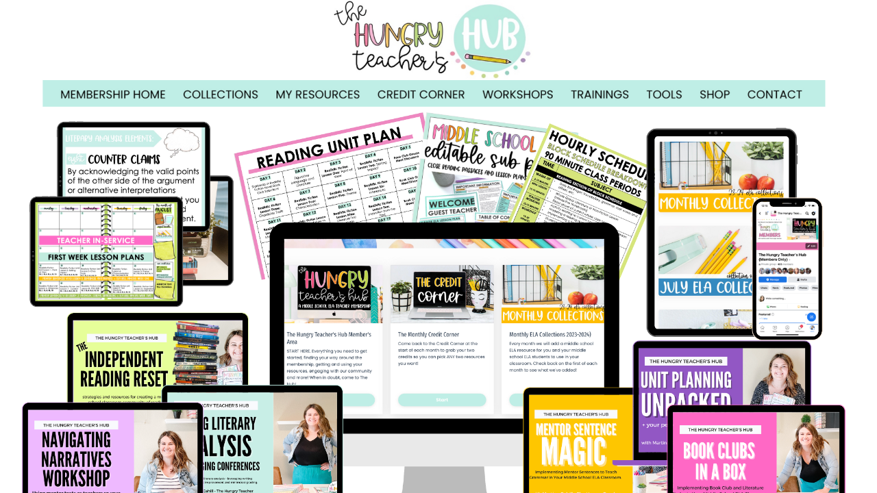 Before The Hungry Teacher's Hub Membership we were struggling to keep up with our pacing. My lessons were all over the place and nothing was organized but since joining I've been able to have continuity- being able to have a routine for myself and my students. I have been able to dive deeper into the curriculum and standards to align with our reading selections. I love that The Hub Membership has opened my eyes to different strategies and approaches to curriculum. I am able to meet my students needs in more ways than before. -Amber Ramirez, 6th and 7th grade ELA teacher